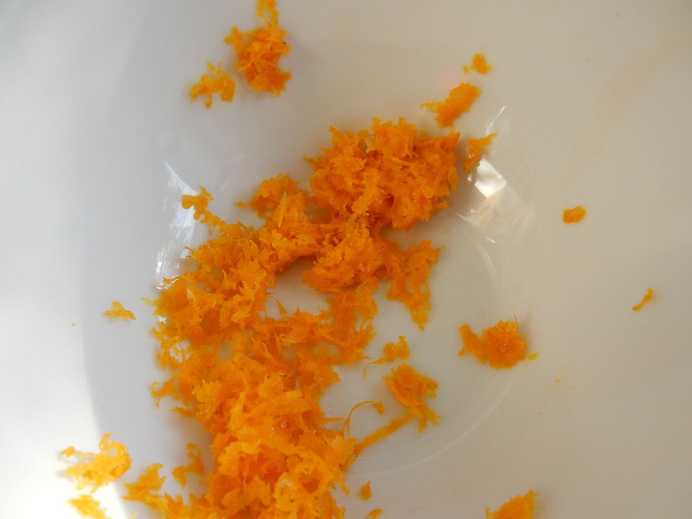 mit einer Reibe abreiben (ohne weiße Haut, sonst wird es bitter). Orange